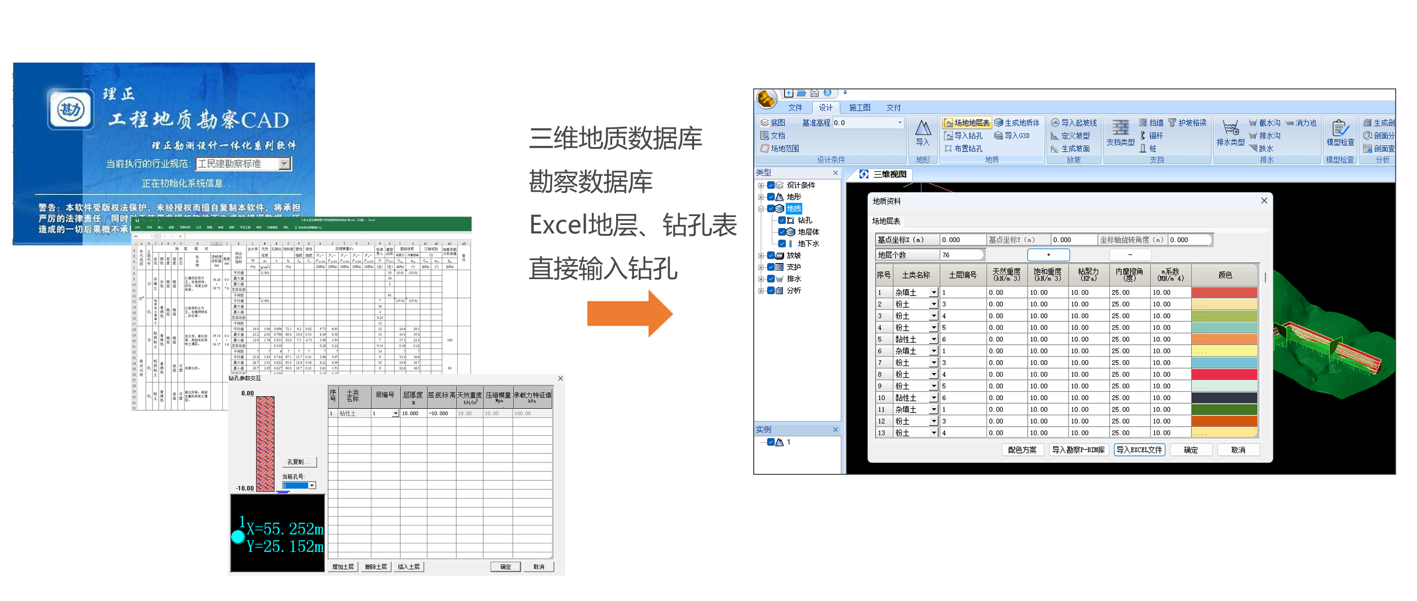 软件基于岩土BIM思想、实现岩土BIM数据交付,并可无缝对接理正勘察岩土数字化成果管理系统以及理正CIM综合展示系统,为岩土工程下游专业提供数据化支撑。