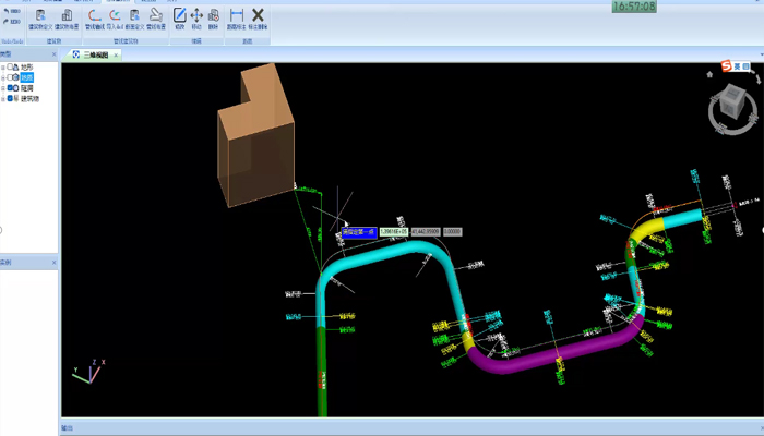 支持测量隧洞与相邻建筑物或地下管线的安全距离。用户可插入建筑物或管线的三维模型,并通过标注功能测量水平、竖向及实际距离,确保施工安全。软件提供便捷的模型修改、移动与删除功能,方便用户根据实际情况调整布置并重新测量距离。