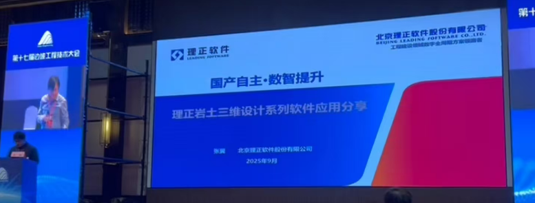 大会首日,理正软件公司应邀登台,带来题为《理正岩土三维设计系列软件应用分享》的专题报告。报告系统梳理了该系列软件的技术研发路线与核心创新亮点,并以临海核电工程为范例,全景展示了以下三维专业设计的深度应用:理正三维地质软件、理正三维边坡设计软件、理正三维基坑设计软件、理正三维隧洞设计软件、理正三维地基处理设计软件、理正复杂填挖三维设计软件,通过核电工程项目案例,嘉宾们直观领略了三维化技术、数字化系统为岩土工程带来的效率跃升与品质革新,同时理正公司还分享了企业在岩土勘察领域AI最新应用技术。
