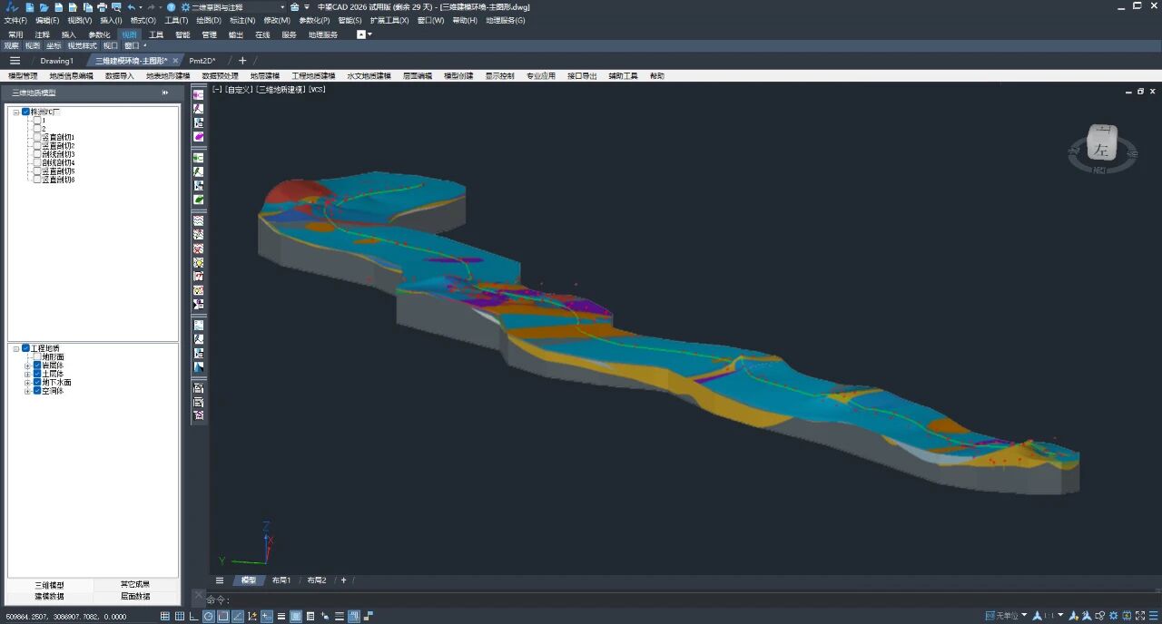 集三维地质模型创建、模型展现、工程地质三维分析应用为一体的软件系统。根据钻孔、地质平面图、纵断面图、剖面图等多源数据创建生成包含多种地质要素的复杂三维工程地质模型。实现任意剖切;基坑、基桩、隧道、路堑刷坡等工程活动的模拟开挖;土方量估算等工作,支持国产CAD平台-中望CAD,支持国产化置换。
