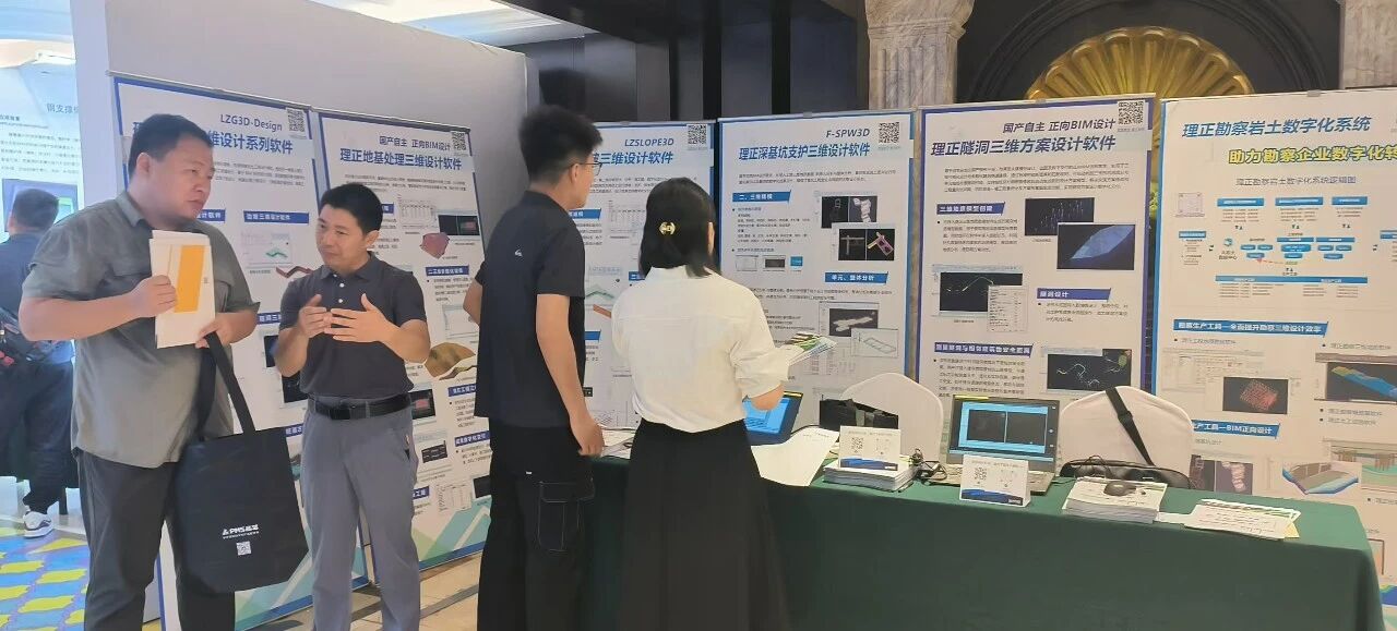 在会议期间,北京理正亮相了多款岩土三维设计专业应用软件以及数字化系统,如理正勘察岩土数字化系统、理正深基坑支护三维设计软件、理正边坡三维设计软件、理正地基处理三维设计软件、理正复杂填挖三维设计软件、理正三维桩基方案优化软件、理正隧洞三维方案设计软件等。作为本次会议受邀的岩土工程行业数字化专业化应用服务厂商,理正软件的展台现场也迎来了众多设计企业与生态合作伙伴的关注与探讨。